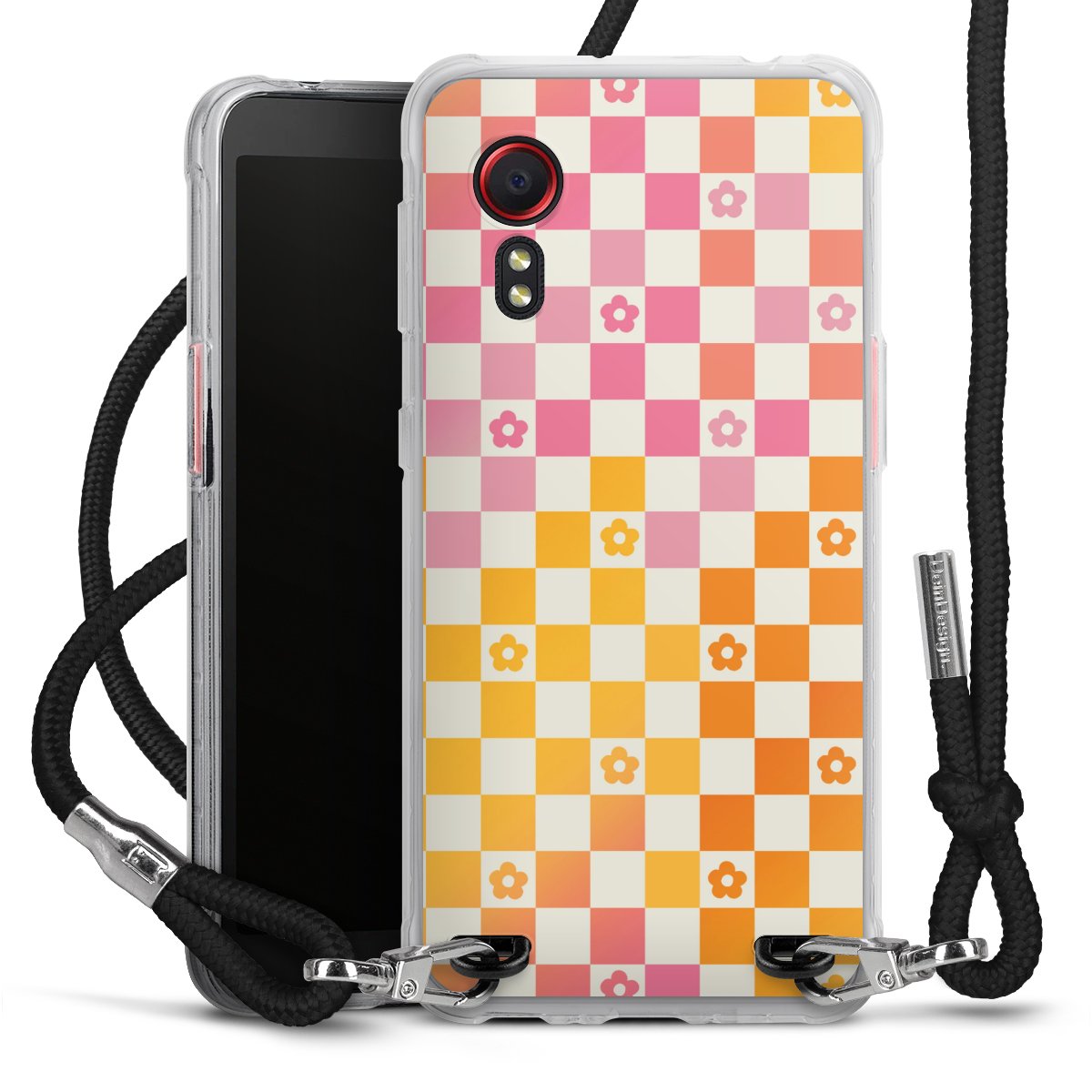 Habe Dein Handy, dank der flexiblen Silikon Handyhülle zum Umhängen mit der Handykette aus Stoff, immer griffbereit.