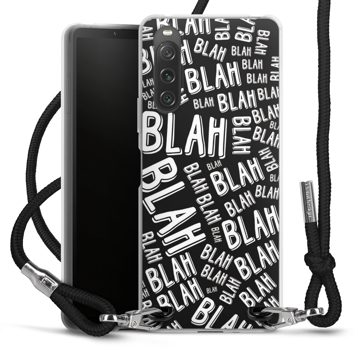 Habe Dein Handy, dank der flexiblen Silikon Handyhülle zum Umhängen mit der Handykette aus Stoff, immer griffbereit.
