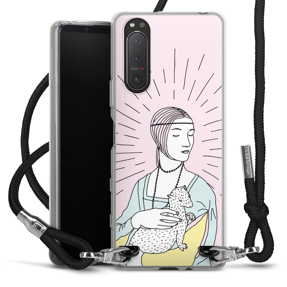Habe Dein Handy, dank der flexiblen Silikon Handyhülle zum Umhängen mit der Handykette aus Stoff, immer griffbereit.