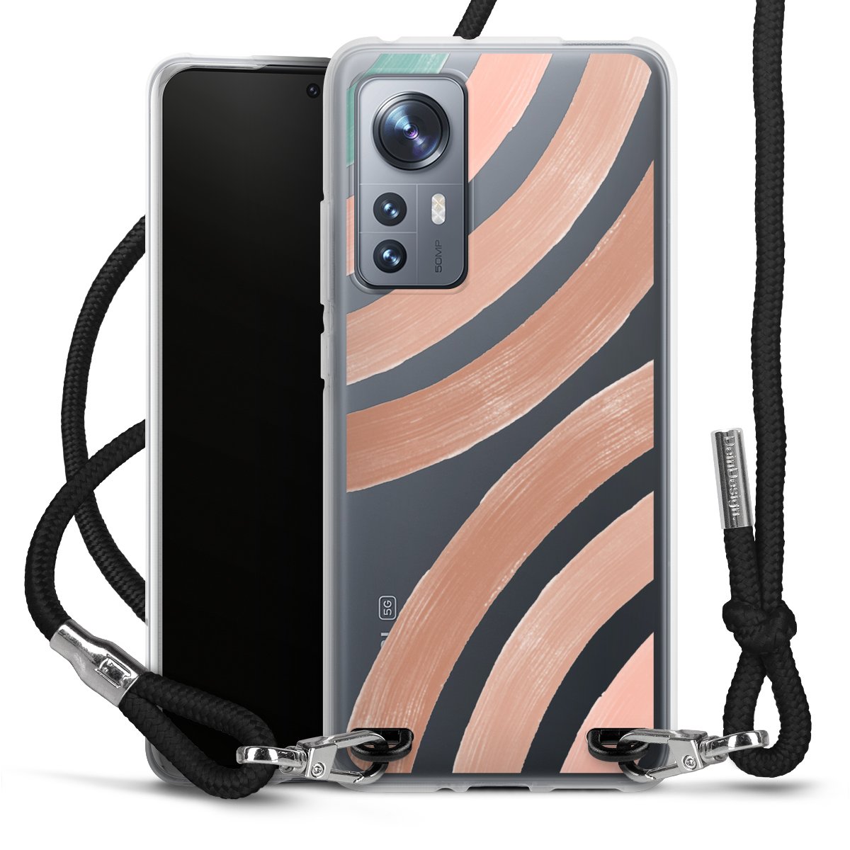 Habe Dein Handy, dank der flexiblen Silikon Handyhülle zum Umhängen mit der Handykette aus Stoff, immer griffbereit.