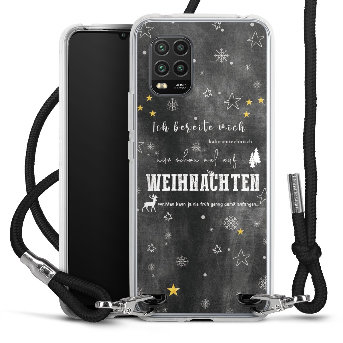 Habe Dein Handy, dank der flexiblen Silikon Handyhülle zum Umhängen mit der Handykette aus Stoff, immer griffbereit.