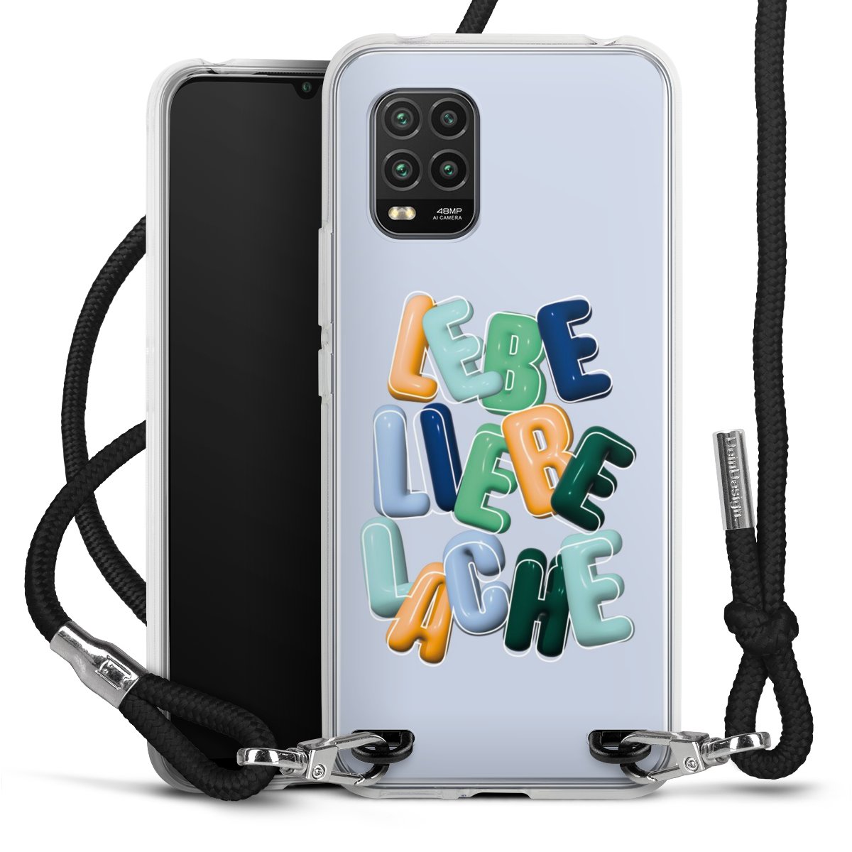 Habe Dein Handy, dank der flexiblen Silikon Handyhülle zum Umhängen mit der Handykette aus Stoff, immer griffbereit.
