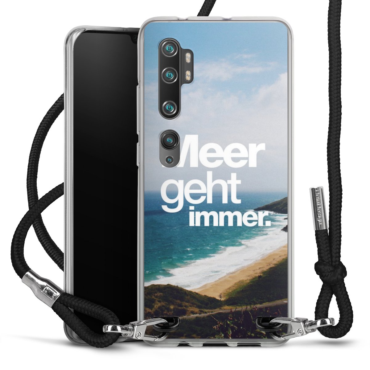 Habe Dein Handy, dank der flexiblen Silikon Handyhülle zum Umhängen mit der Handykette aus Stoff, immer griffbereit.
