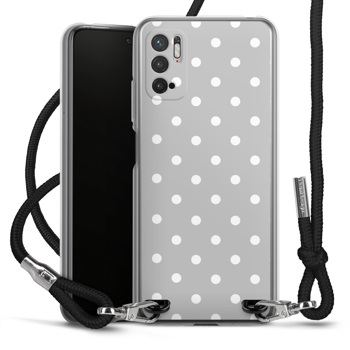 Habe Dein Handy, dank der flexiblen Silikon Handyhülle zum Umhängen mit der Handykette aus Stoff, immer griffbereit.