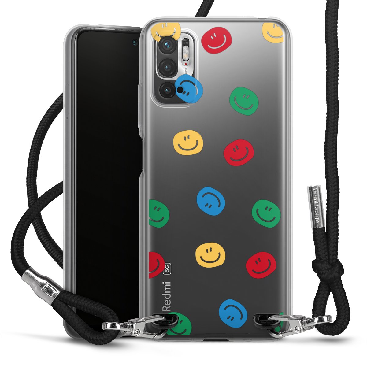 Habe Dein Handy, dank der flexiblen Silikon Handyhülle zum Umhängen mit der Handykette aus Stoff, immer griffbereit.