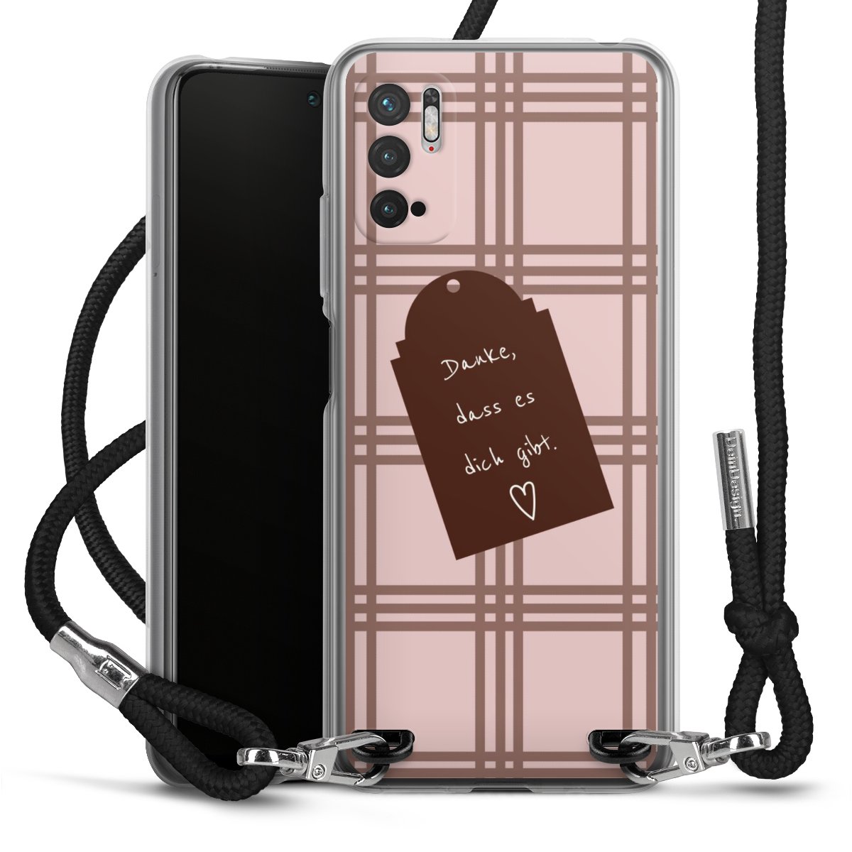 Habe Dein Handy, dank der flexiblen Silikon Handyhülle zum Umhängen mit der Handykette aus Stoff, immer griffbereit.