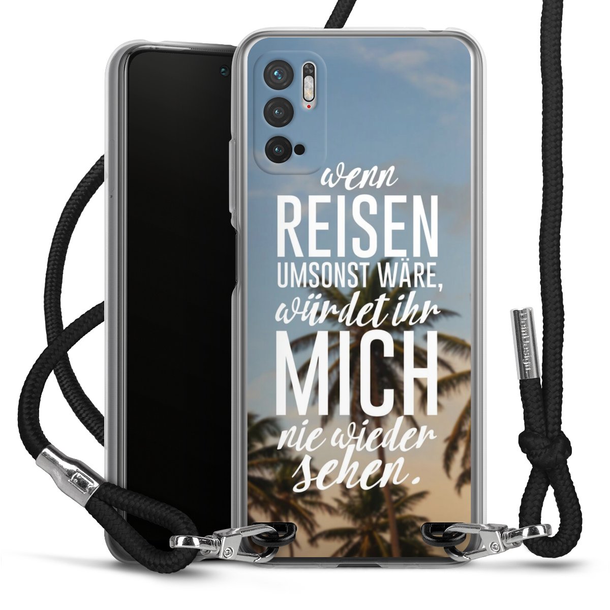 Bei dieser Handyhülle nutzen wir das solide Direktdruck-Verfahren, weshalb der Druckbereich ausschließlich die Rückseite umfasst und der Rand hingegen unbedruckt bleibt. Das Case zum Umhängen kann sowohl unbedruckt, als auch vollflächig oder partiell bedruckt bestellt werden. Wähle für Dein Design entweder eines unserer exklusiven Shop-Motive, oder werde kreativ und gestalte Dein Wunschdesign zum Beispiel mit Fotos und Overlays selbst. Designe Dir Dein persönliches Trend-Accessoire und setze ein individuelles Statement auf den Straßen!