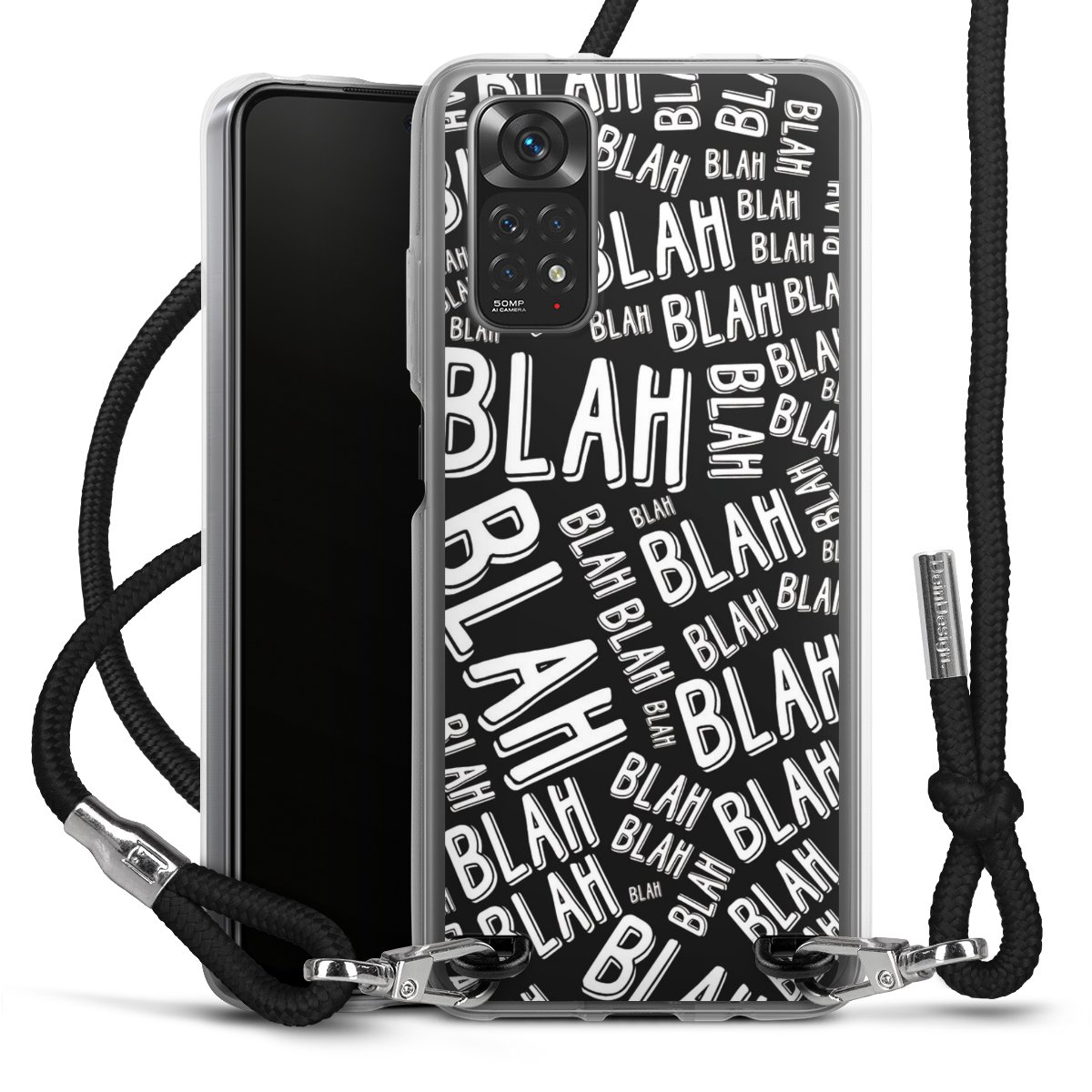Habe Dein Handy, dank der flexiblen Silikon Handyhülle zum Umhängen mit der Handykette aus Stoff, immer griffbereit.