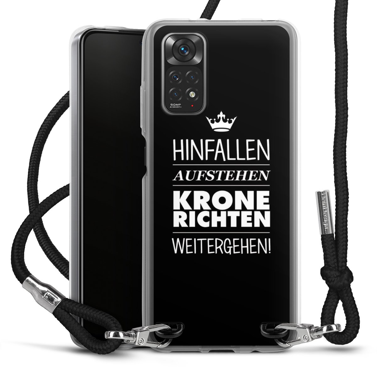 Habe Dein Handy, dank der flexiblen Silikon Handyhülle zum Umhängen mit der Handykette aus Stoff, immer griffbereit.
