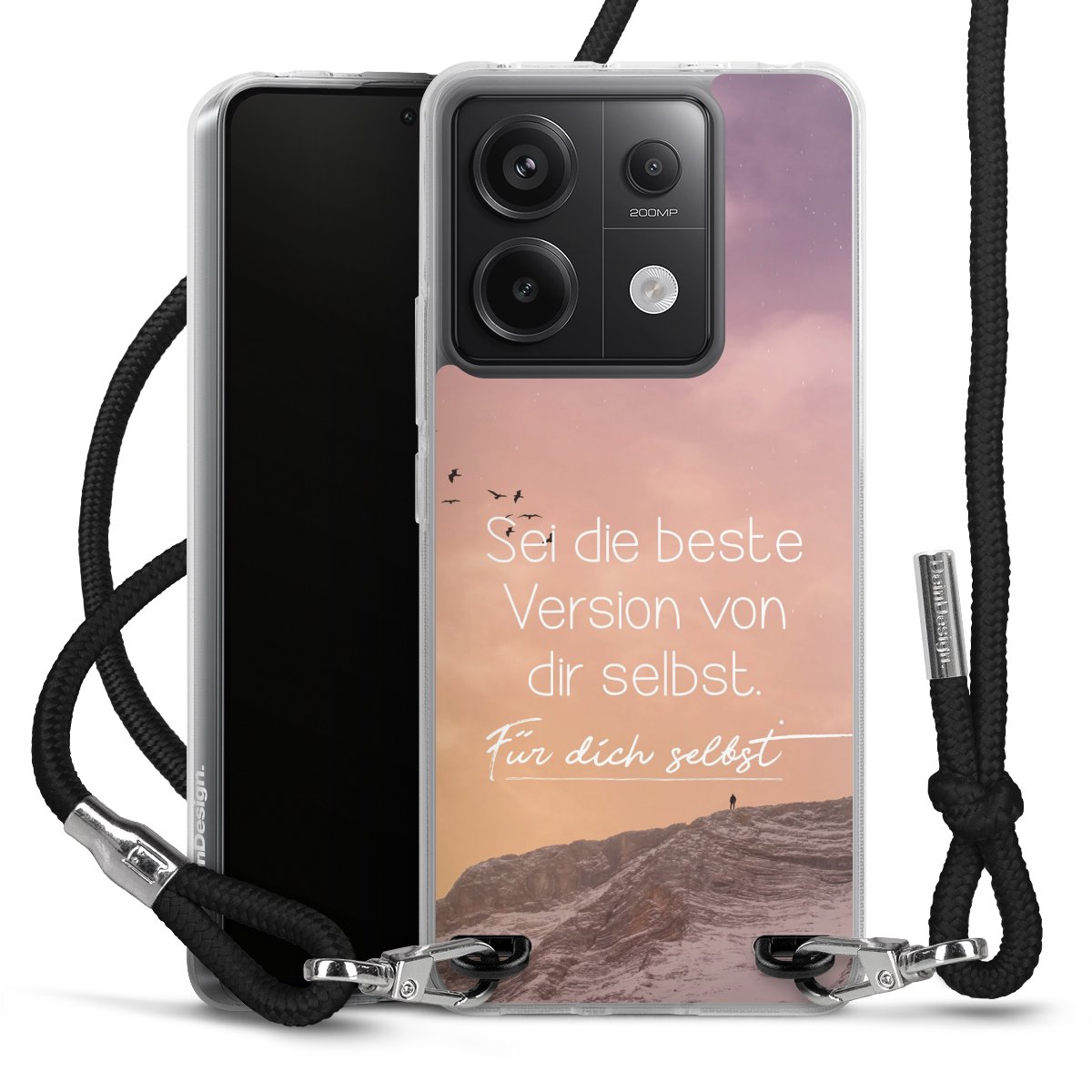 Bei dieser Handyhülle nutzen wir das solide Direktdruck-Verfahren, weshalb der Druckbereich ausschließlich die Rückseite umfasst und der Rand hingegen unbedruckt bleibt. Das Case zum Umhängen kann sowohl unbedruckt, als auch vollflächig oder partiell bedruckt bestellt werden. Wähle für Dein Design entweder eines unserer exklusiven Shop-Motive, oder werde kreativ und gestalte Dein Wunschdesign zum Beispiel mit Fotos und Overlays selbst. Designe Dir Dein persönliches Trend-Accessoire und setze ein individuelles Statement auf den Straßen!