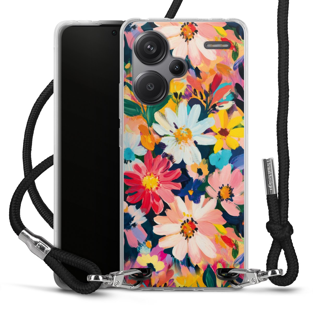 Habe Dein Handy, dank der flexiblen Silikon Handyhülle zum Umhängen mit der Handykette aus Stoff, immer griffbereit.