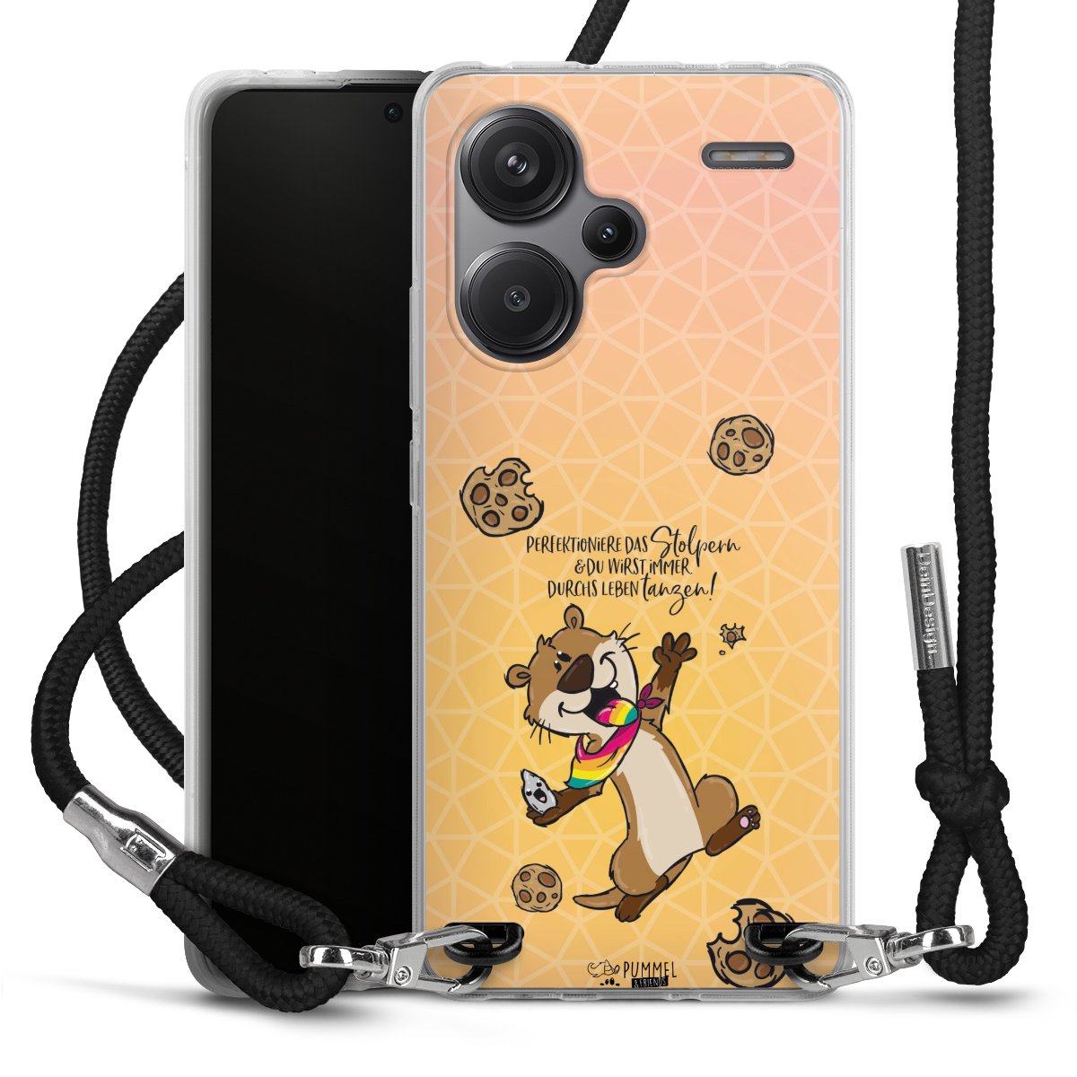 Habe Dein Handy, dank der flexiblen Silikon Handyhülle zum Umhängen mit der Handykette aus Stoff, immer griffbereit.