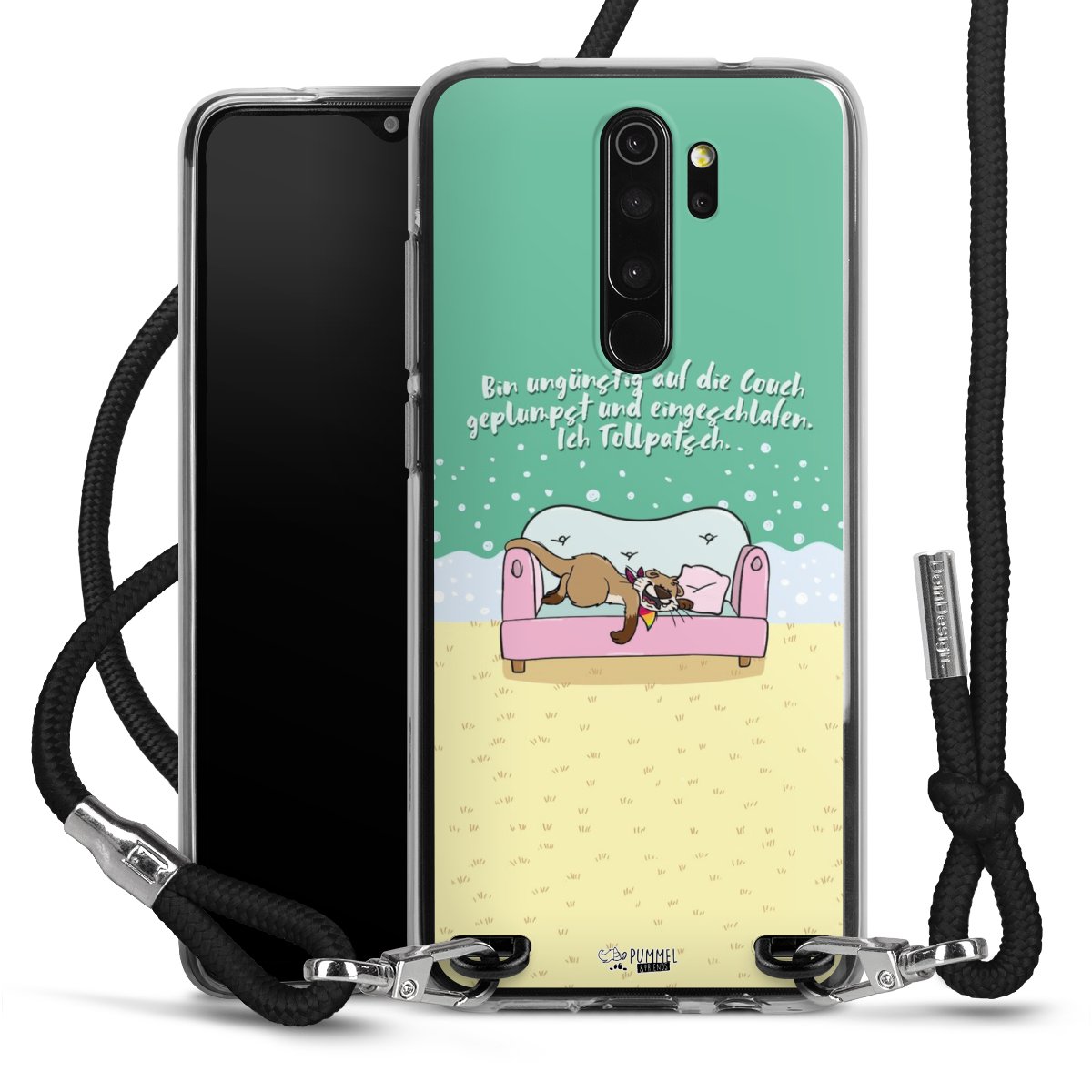 Habe Dein Handy, dank der flexiblen Silikon Handyhülle zum Umhängen mit der Handykette aus Stoff, immer griffbereit.