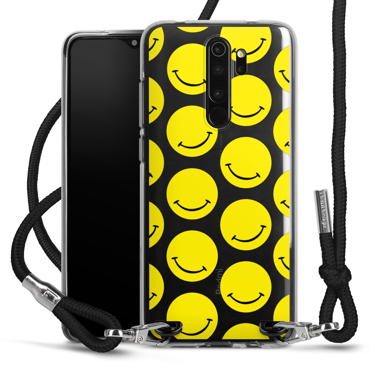 Habe Dein Handy, dank der flexiblen Silikon Handyhülle zum Umhängen mit der Handykette aus Stoff, immer griffbereit.