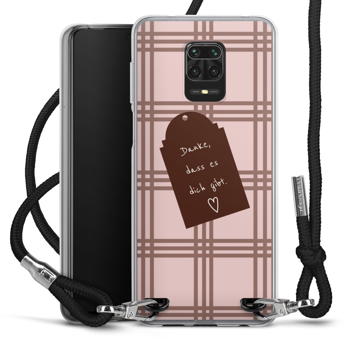 Habe Dein Handy, dank der flexiblen Silikon Handyhülle zum Umhängen mit der Handykette aus Stoff, immer griffbereit.