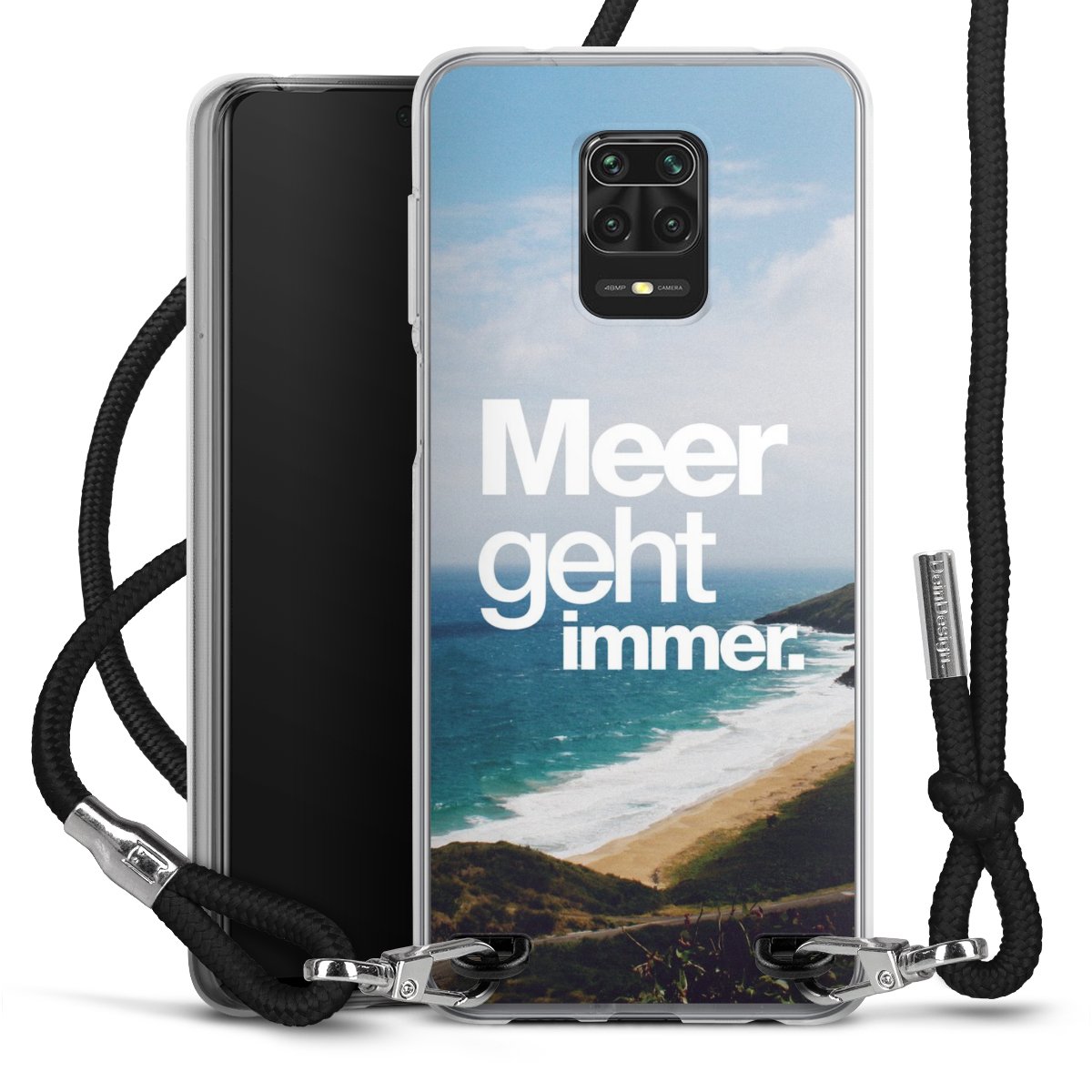 Habe Dein Handy, dank der flexiblen Silikon Handyhülle zum Umhängen mit der Handykette aus Stoff, immer griffbereit.