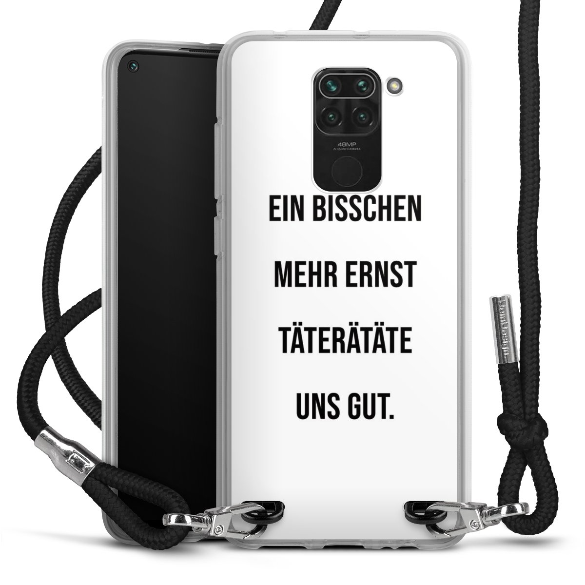 Die transparente Silikonhülle besteht aus flexiblen TPU (thermoplastisches Polyurethan) und bietet zugleich robusten Schutz. Durch das langlebige, bruchsichere Material ist die Hülle biegsam und formbeständig zugleich. Das stylische Trend-Accessoire liegt griffig in der Hand und wird optimal von der Handykette aus Stoff (Polyester) ergänzt. Das geflochtene Stoffband ist ca. 1,70 Meter lang mit einem Durchmesser von ca. 0,5cm. Aufgrund der besonderen Knotentechnik ist das Band durch einfaches Ziehen in der Länge verstellbar, damit Du es individuell nach Deinen Wünschen anpassen kannst. Das praktische Case zum Umhängen ist mit dem Stoffband in den Farben Schwarz, Rot, Rosa, Grau, Senfgelb, Bordeaux und Royalblau erhältlich. Die Enden des Stoffbandes sind mit metallischen Endkappen umfasst und somit sicher vor dem Ausfransen geschützt.