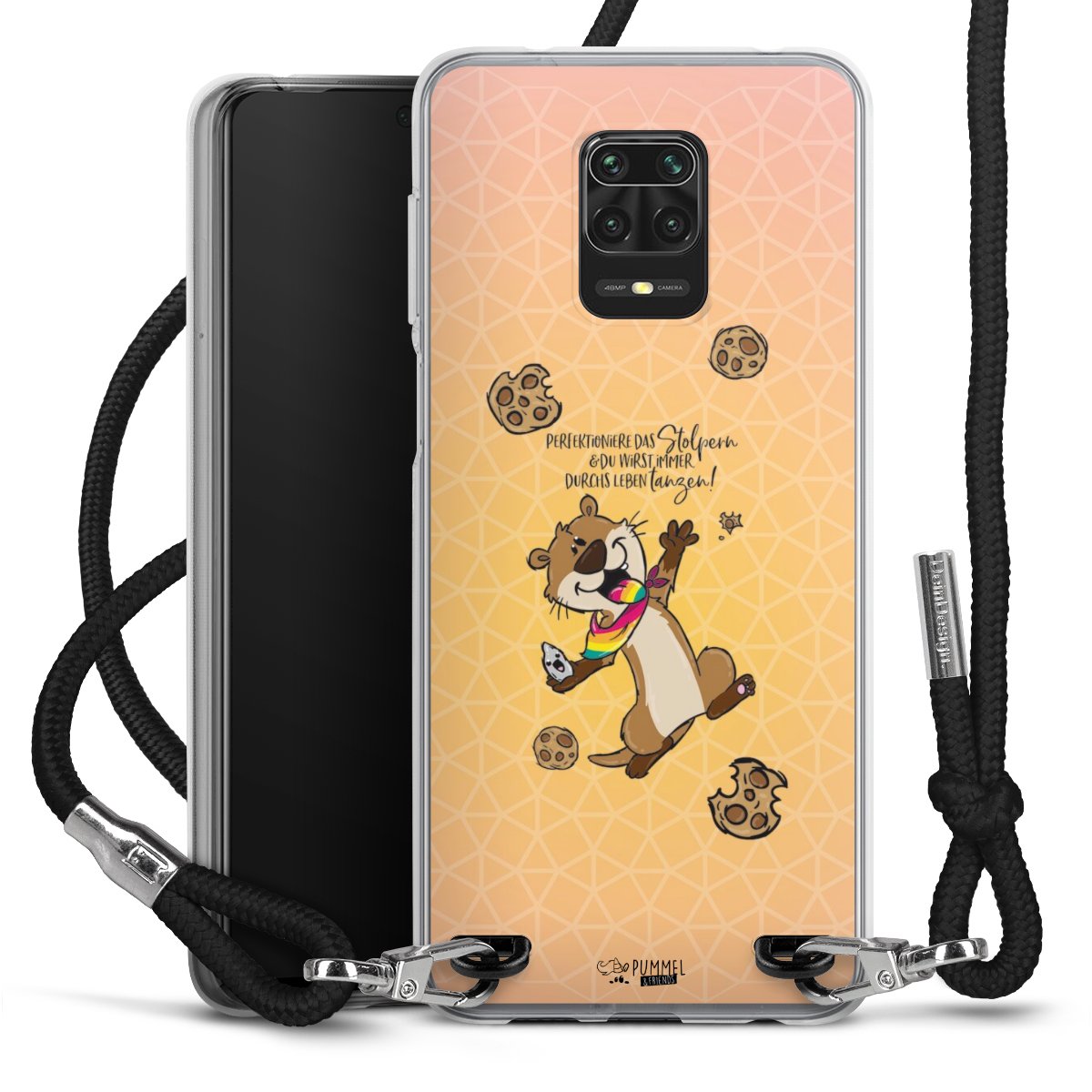 Habe Dein Handy, dank der flexiblen Silikon Handyhülle zum Umhängen mit der Handykette aus Stoff, immer griffbereit.