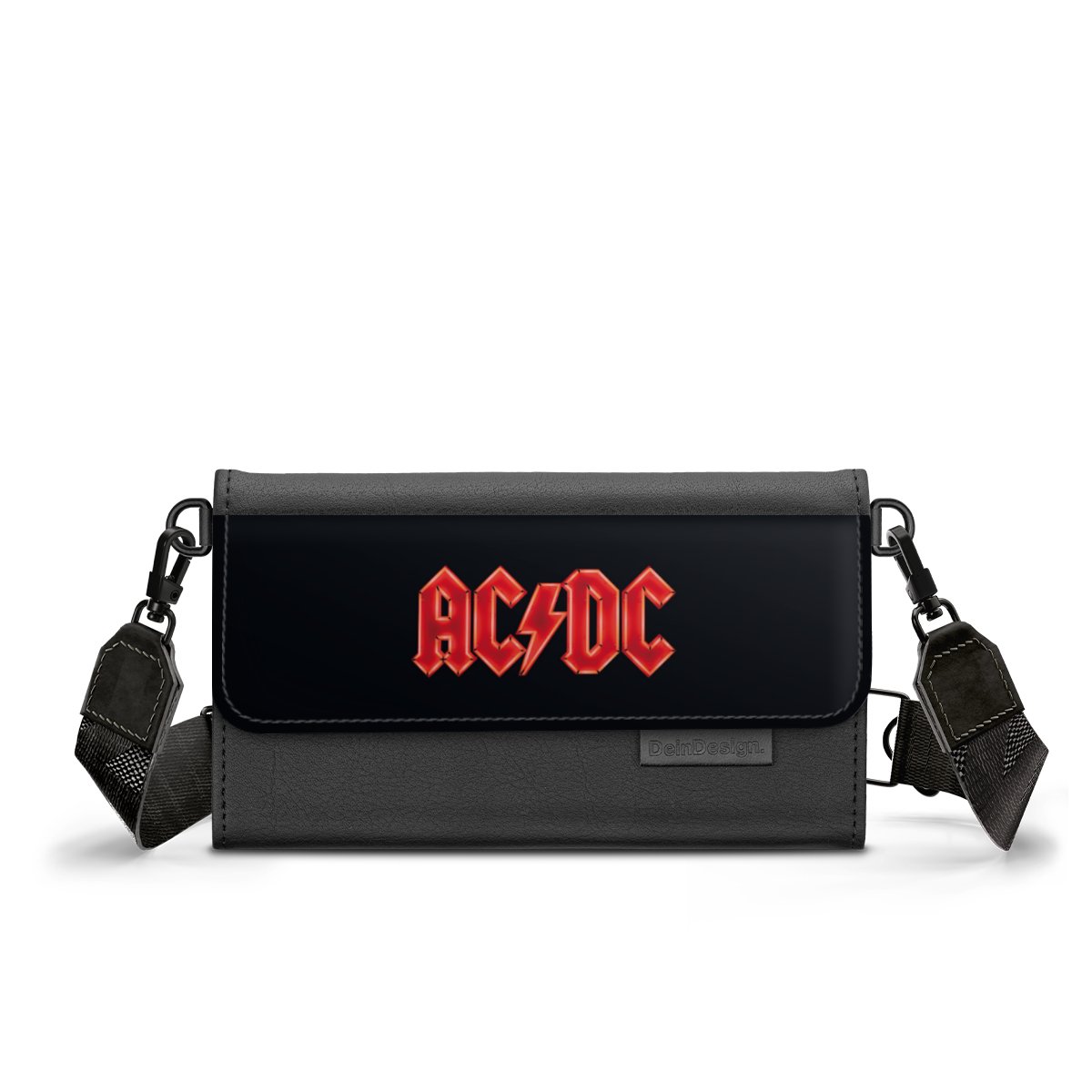 • Durch seitlich angebrachte Ringe aus Metall wird das Band mithilfe von Karabinerhaken an der Clutch befestigt