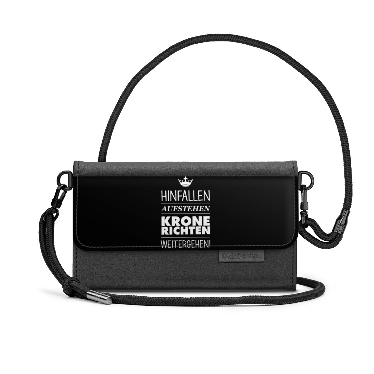 Schluss mit Chaos-Handtaschen! Hier kommt die DeinDesign Handy Clutch. Du wirst sie lieben, denn in ihr bekommen Smartphone, Karten und Geld einen festen Platz. So sind alle Essentials direkt parat und platzsparend und sicher verstaut.