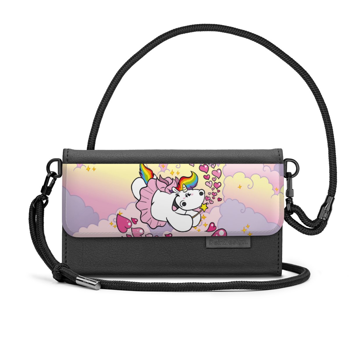 Schluss mit Chaos-Handtaschen! Hier kommt die DeinDesign Handy Clutch. Du wirst sie lieben, denn in ihr bekommen Smartphone, Karten und Geld einen festen Platz. So sind alle Essentials direkt parat und platzsparend und sicher verstaut.