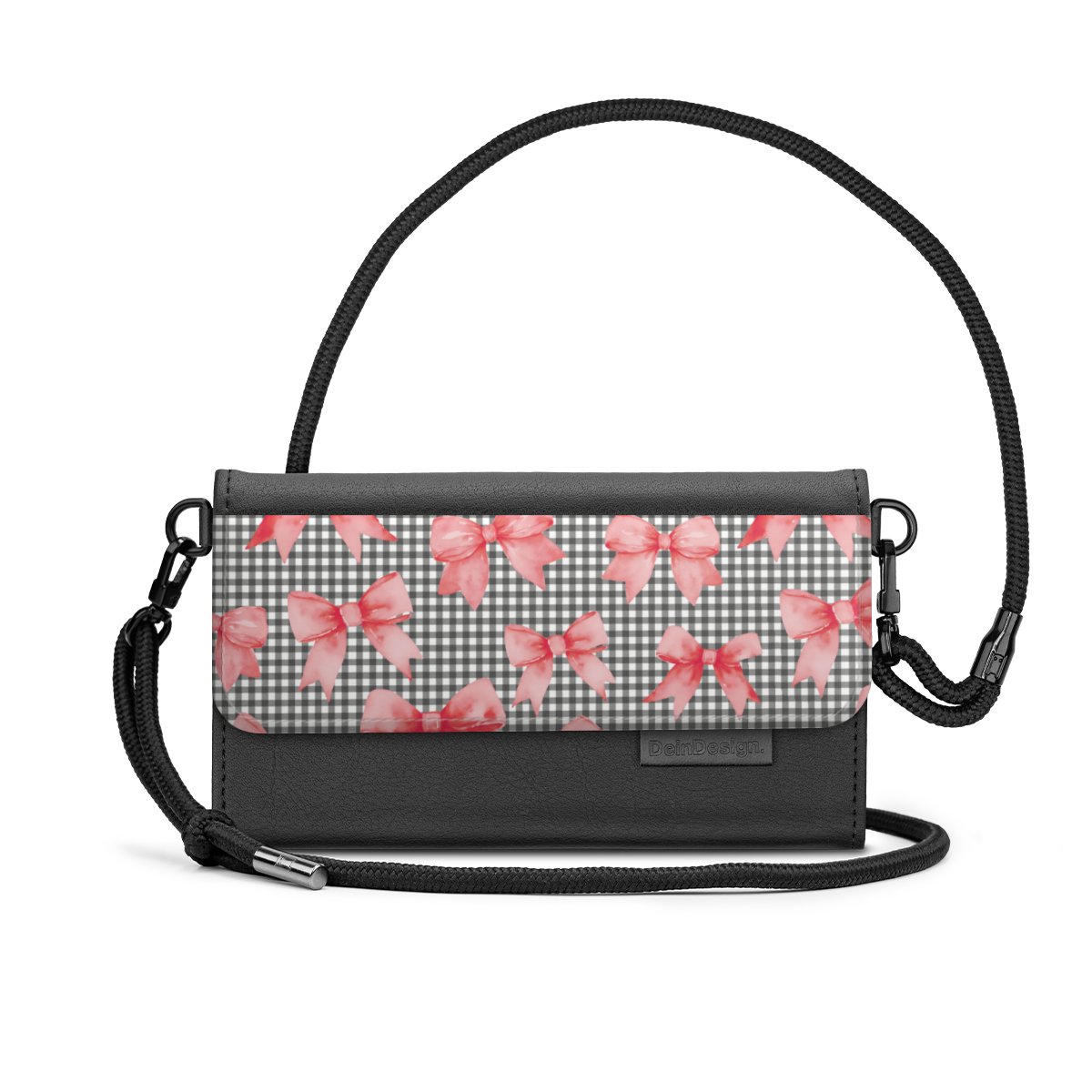 Schluss mit Chaos-Handtaschen! Hier kommt die DeinDesign Handy Clutch. Du wirst sie lieben, denn in ihr bekommen Smartphone, Karten und Geld einen festen Platz. So sind alle Essentials direkt parat und platzsparend und sicher verstaut.