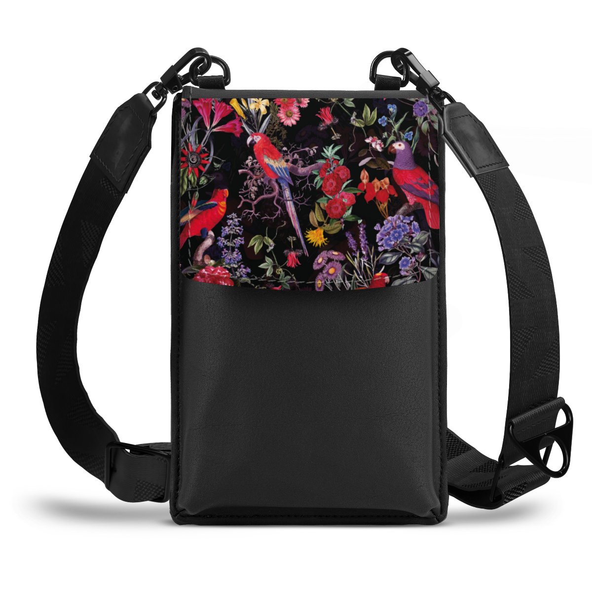 Dunkle Blumen und Papageien