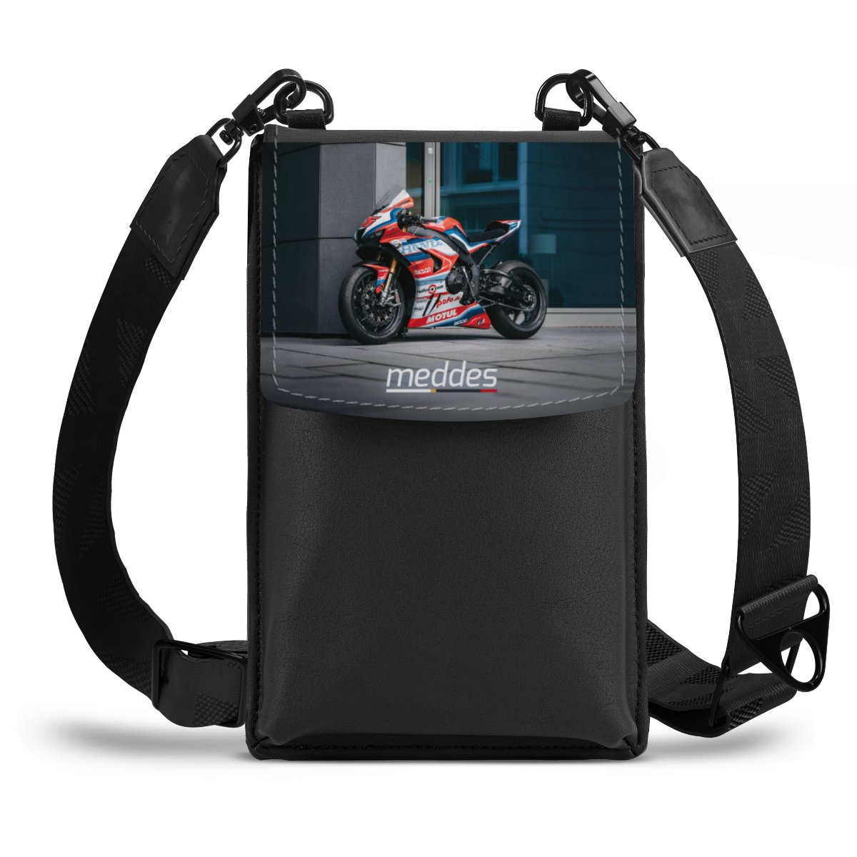 Mit unserer praktischen MiniBag hast Du alles Nötige immer dabei und stylisch verstaut. Das Hauptfach bietet Platz für Schlüssel, Taschentücher und Co. Durch einen praktischen Zugmechanismus musst Du nie wieder nach Deinem Handy kramen, sondern hast es stets griffbereit. Ein zusätzliches Reißverschlussfach auf der Rückseite der MiniBag ist der ideale Ort für Geld und Karten. Und hey, wir wären nicht DeinDesign, wenn Du der coolen Tasche nicht Dein ganz persönliches Design verpassen könntest. Gestalte die Klappe mit Deinem Lieblingsdesign und mache die MiniBag durch zusätzliche Wechselklappen und unterschiedliche Tragebänder zum Perfect Match für jede Gelegenheit!