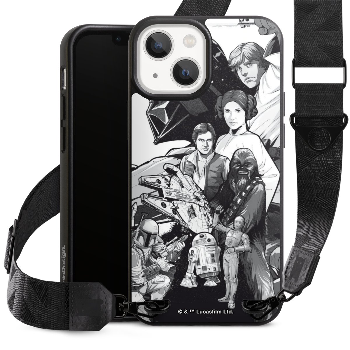 Darth Vader, C3PO, R2D2 und Meister Yoda findest Du in unserem Star Wars Shop auf DeinDesign. Natürlich gibt es auch Star Wars Handyhüllen mit den legendären Charakteren Luke Skywalker, Prinzessin Leia und Han Solo, den Helden der ersten Saga. Wer jedoch die Hauptfiguren der neuen Star Wars Filme ins Herz geschlossen hat, kann auch Finn und Rey mit ihren mächtigen Waffen auf der Rückseite seines Smartphones haben. Die vielseitigen Schutzhüllen in verschiedenen Ausführungen sind das perfekte Geschenk für alle Star Wars Fans, die ihrem Smartphone eine individuelle Note verleihen wollen.