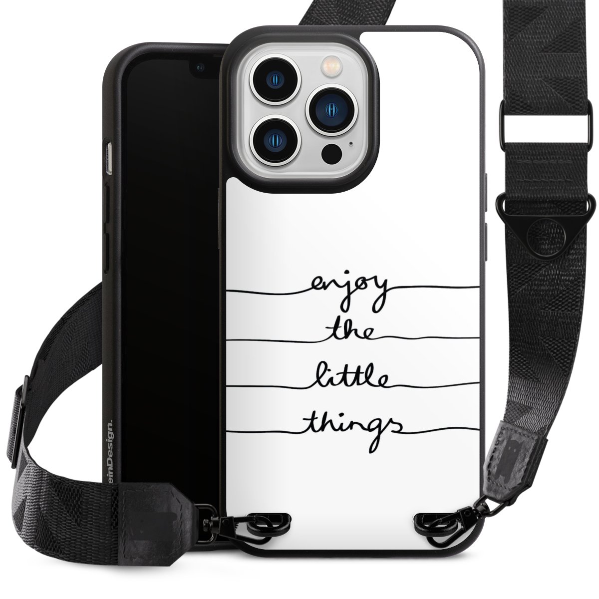 Gestalte Dein Case ganz nach Deinen Wünschen! Edles Creme oder lieber klassisches Schwarz? Du entscheidest, welche Farbe am besten zu Dir passt. Die dezenten Designs der Gurtbänder passen garantiert zu Deiner Hülle, egal mit welchem Lieblingsmotiv Du Dein Case bedrucken lässt.