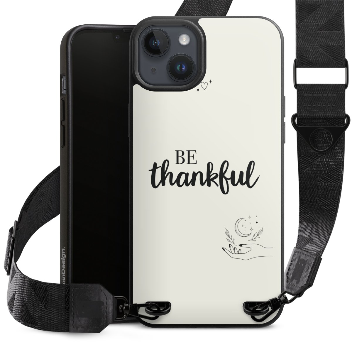 Gestalte Dein Case ganz nach Deinen Wünschen! Edles Creme oder lieber klassisches Schwarz? Du entscheidest, welche Farbe am besten zu Dir passt. Die dezenten Designs der Gurtbänder passen garantiert zu Deiner Hülle, egal mit welchem Lieblingsmotiv Du Dein Case bedrucken lässt.