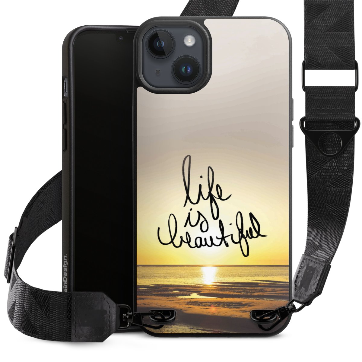 Gestalte Dein Case ganz nach Deinen Wünschen! Edles Creme oder lieber klassisches Schwarz? Du entscheidest, welche Farbe am besten zu Dir passt. Die dezenten Designs der Gurtbänder passen garantiert zu Deiner Hülle, egal mit welchem Lieblingsmotiv Du Dein Case bedrucken lässt.