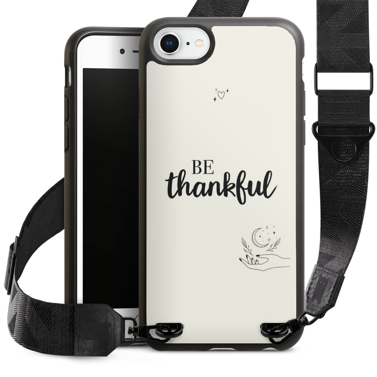 Gestalte Dein Case ganz nach Deinen Wünschen! Edles Creme oder lieber klassisches Schwarz? Du entscheidest, welche Farbe am besten zu Dir passt. Die dezenten Designs der Gurtbänder passen garantiert zu Deiner Hülle, egal mit welchem Lieblingsmotiv Du Dein Case bedrucken lässt.