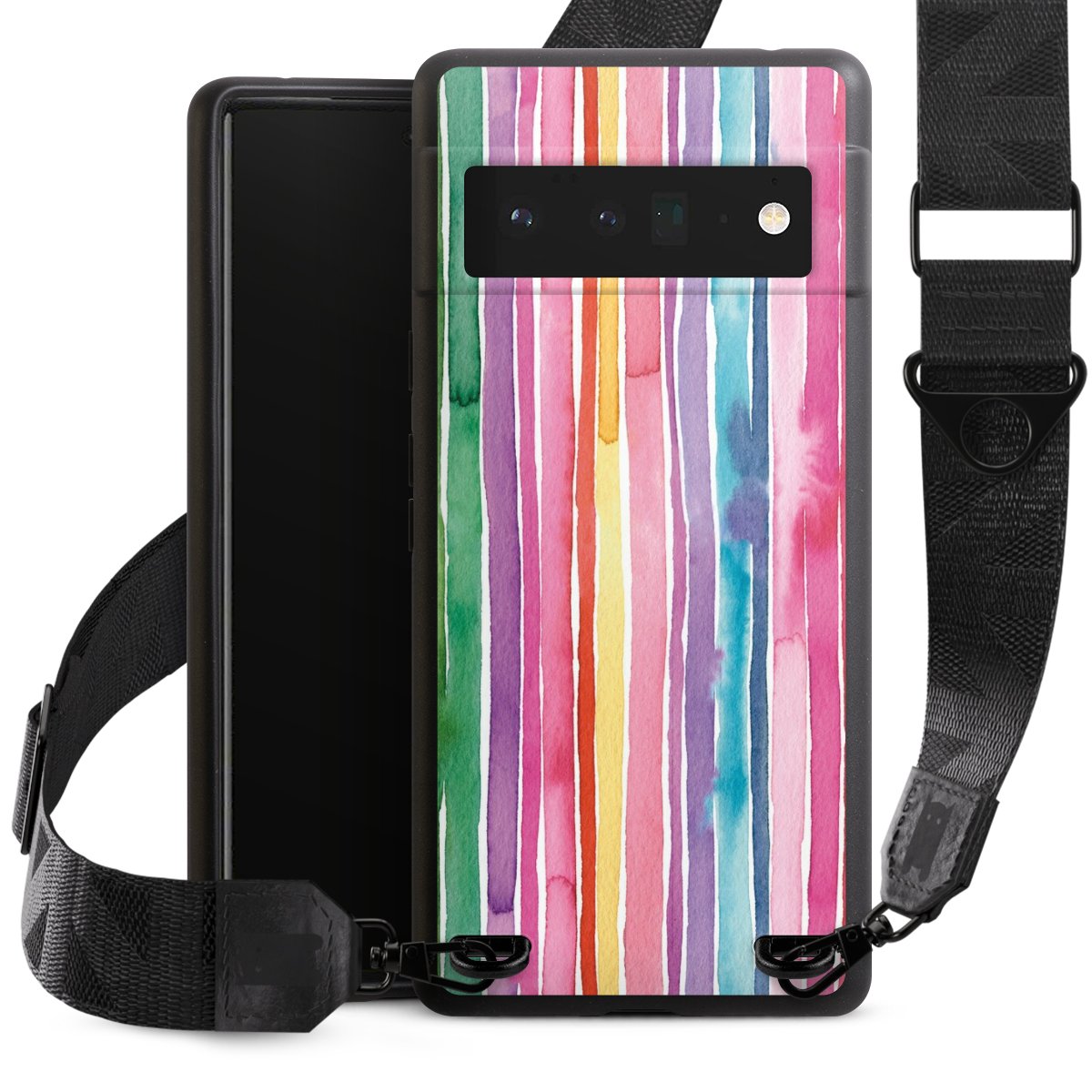 Gestalte Dein Case ganz nach Deinen Wünschen! Edles Creme oder lieber klassisches Schwarz? Du entscheidest, welche Farbe am besten zu Dir passt. Die dezenten Designs der Gurtbänder passen garantiert zu Deiner Hülle, egal mit welchem Lieblingsmotiv Du Dein Case bedrucken lässt.