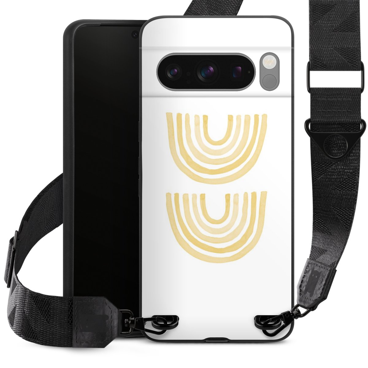 Gestalte Dein Case ganz nach Deinen Wünschen! Edles Creme oder lieber klassisches Schwarz? Du entscheidest, welche Farbe am besten zu Dir passt. Die dezenten Designs der Gurtbänder passen garantiert zu Deiner Hülle, egal mit welchem Lieblingsmotiv Du Dein Case bedrucken lässt.