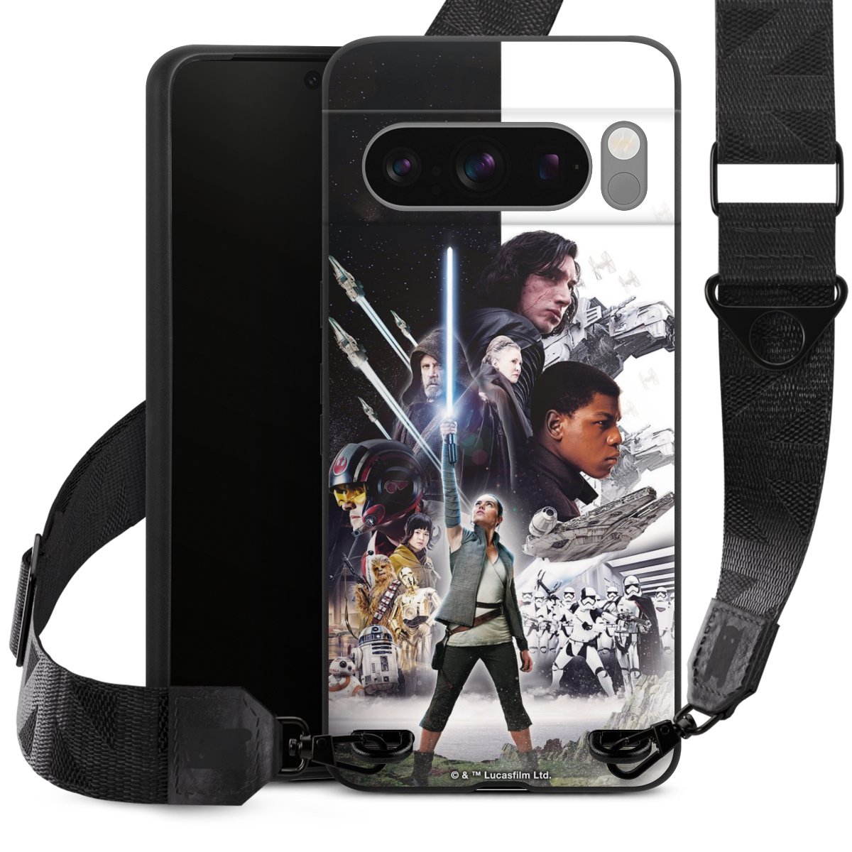 Darth Vader, C3PO, R2D2 und Meister Yoda findest Du in unserem Star Wars Shop auf DeinDesign. Natürlich gibt es auch Star Wars Handyhüllen mit den legendären Charakteren Luke Skywalker, Prinzessin Leia und Han Solo, den Helden der ersten Saga. Wer jedoch die Hauptfiguren der neuen Star Wars Filme ins Herz geschlossen hat, kann auch Finn und Rey mit ihren mächtigen Waffen auf der Rückseite seines Smartphones haben. Die vielseitigen Schutzhüllen in verschiedenen Ausführungen sind das perfekte Geschenk für alle Star Wars Fans, die ihrem Smartphone eine individuelle Note verleihen wollen.