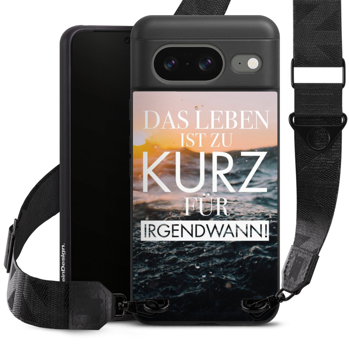 Gestalte Dein Case ganz nach Deinen Wünschen! Edles Creme oder lieber klassisches Schwarz? Du entscheidest, welche Farbe am besten zu Dir passt. Die dezenten Designs der Gurtbänder passen garantiert zu Deiner Hülle, egal mit welchem Lieblingsmotiv Du Dein Case bedrucken lässt.