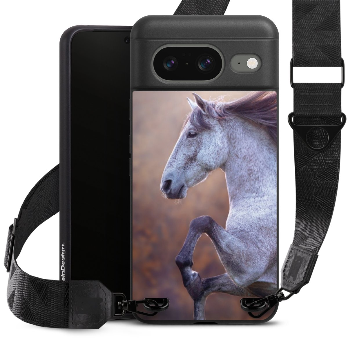 Gestalte Dein Case ganz nach Deinen Wünschen! Edles Creme oder lieber klassisches Schwarz? Du entscheidest, welche Farbe am besten zu Dir passt. Die dezenten Designs der Gurtbänder passen garantiert zu Deiner Hülle, egal mit welchem Lieblingsmotiv Du Dein Case bedrucken lässt.