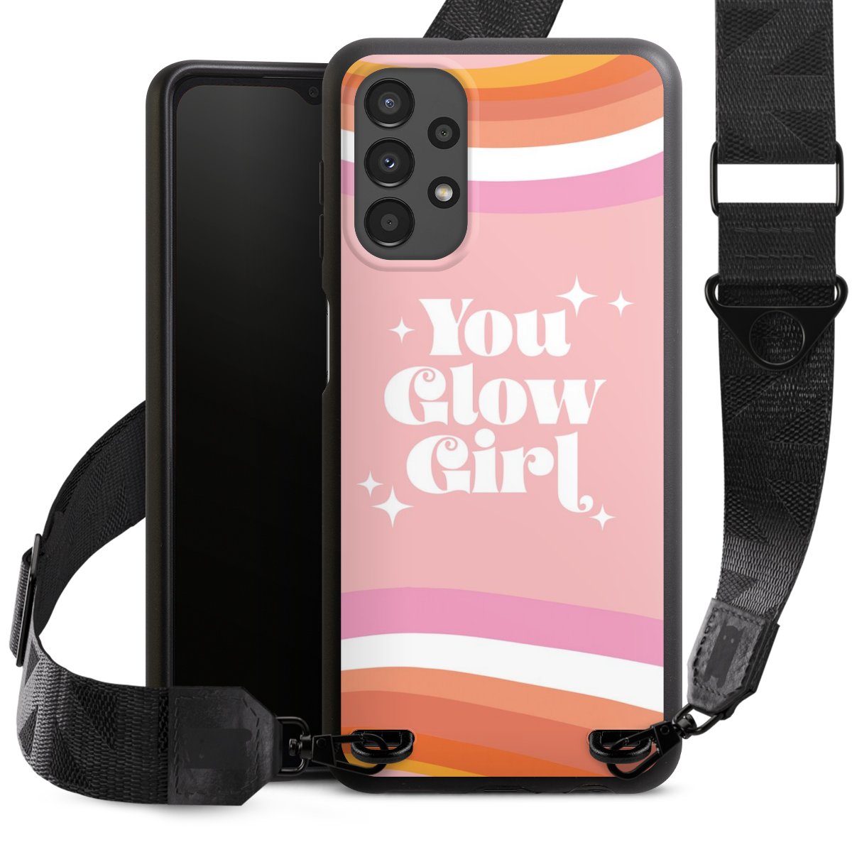 Gestalte Dein Case ganz nach Deinen Wünschen! Edles Creme oder lieber klassisches Schwarz? Du entscheidest, welche Farbe am besten zu Dir passt. Die dezenten Designs der Gurtbänder passen garantiert zu Deiner Hülle, egal mit welchem Lieblingsmotiv Du Dein Case bedrucken lässt.
