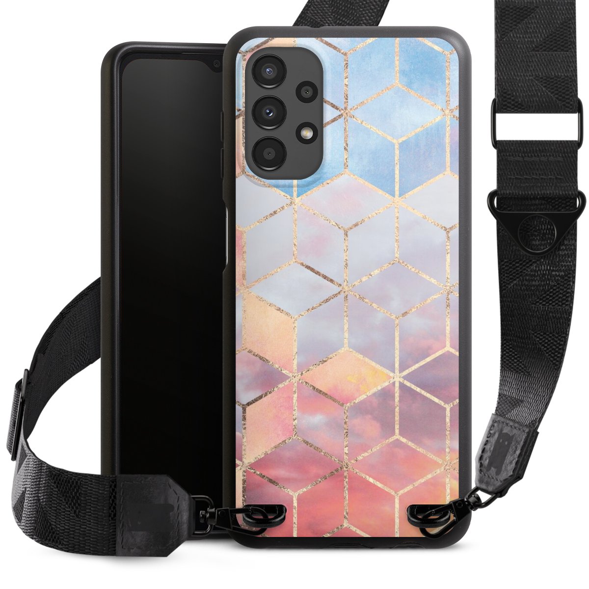 Gestalte Dein Case ganz nach Deinen Wünschen! Edles Creme oder lieber klassisches Schwarz? Du entscheidest, welche Farbe am besten zu Dir passt. Die dezenten Designs der Gurtbänder passen garantiert zu Deiner Hülle, egal mit welchem Lieblingsmotiv Du Dein Case bedrucken lässt.