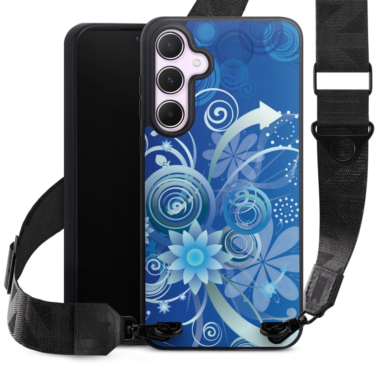 Blumen und Wirbel blau
