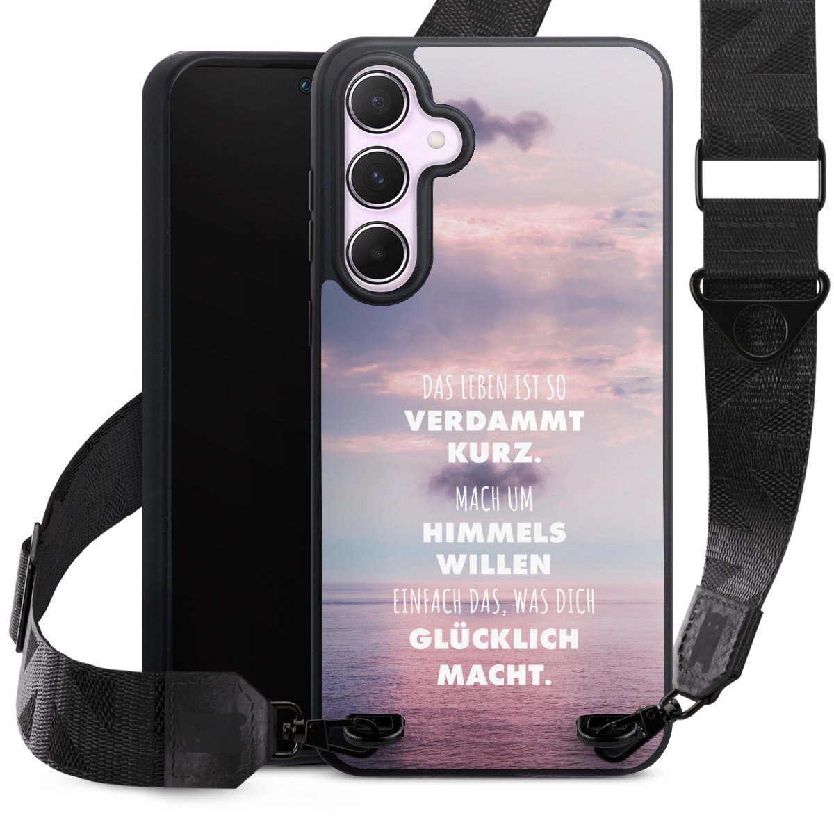 Gestalte Dein Case ganz nach Deinen Wünschen! Edles Creme oder lieber klassisches Schwarz? Du entscheidest, welche Farbe am besten zu Dir passt. Die dezenten Designs der Gurtbänder passen garantiert zu Deiner Hülle, egal mit welchem Lieblingsmotiv Du Dein Case bedrucken lässt.