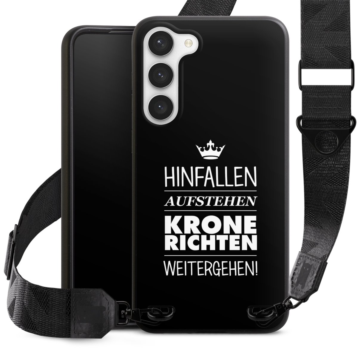 Gestalte Dein Case ganz nach Deinen Wünschen! Edles Creme oder lieber klassisches Schwarz? Du entscheidest, welche Farbe am besten zu Dir passt. Die dezenten Designs der Gurtbänder passen garantiert zu Deiner Hülle, egal mit welchem Lieblingsmotiv Du Dein Case bedrucken lässt.