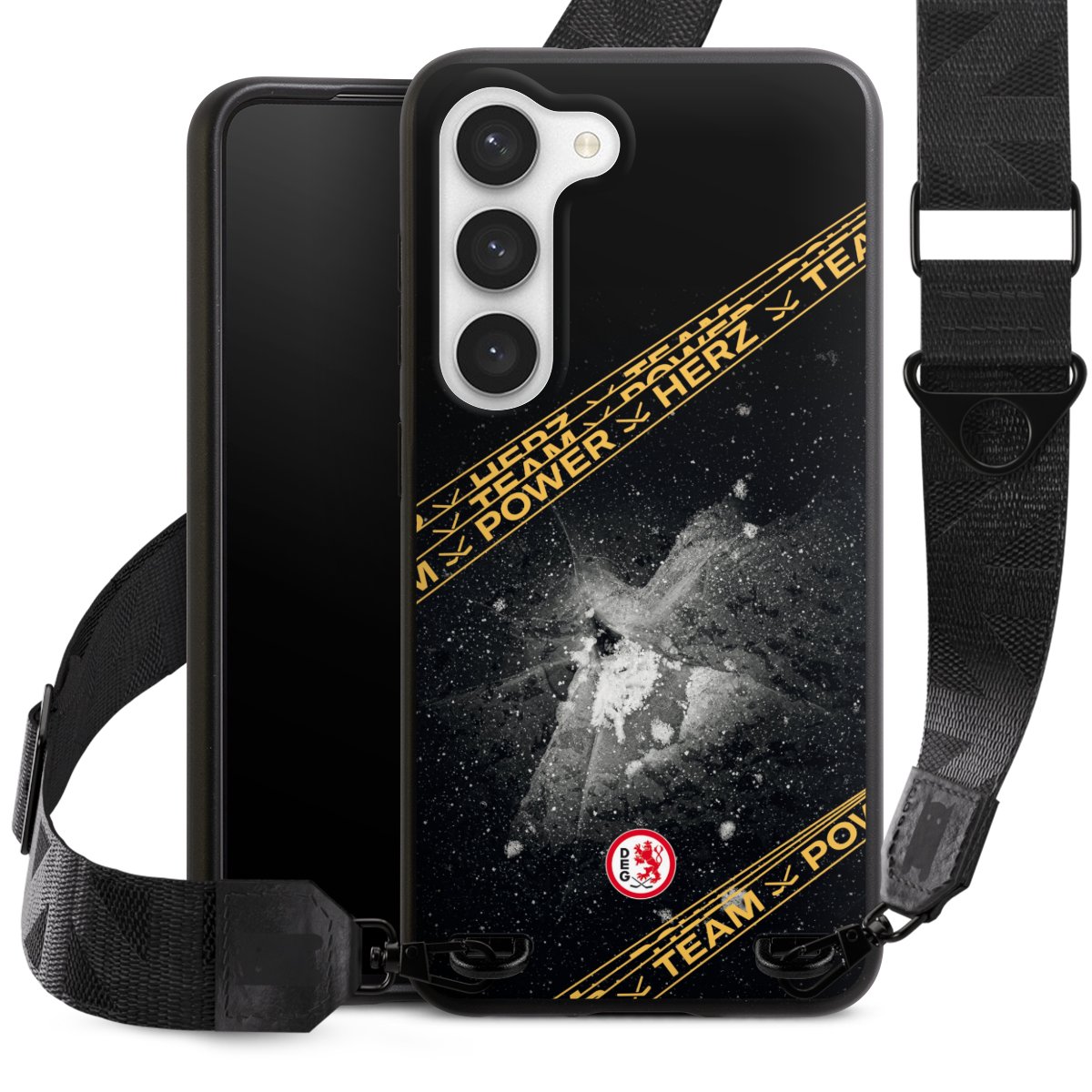 Gestalte Dein Case ganz nach Deinen Wünschen! Edles Creme oder lieber klassisches Schwarz? Du entscheidest, welche Farbe am besten zu Dir passt. Die dezenten Designs der Gurtbänder passen garantiert zu Deiner Hülle, egal mit welchem Lieblingsmotiv Du Dein Case bedrucken lässt.