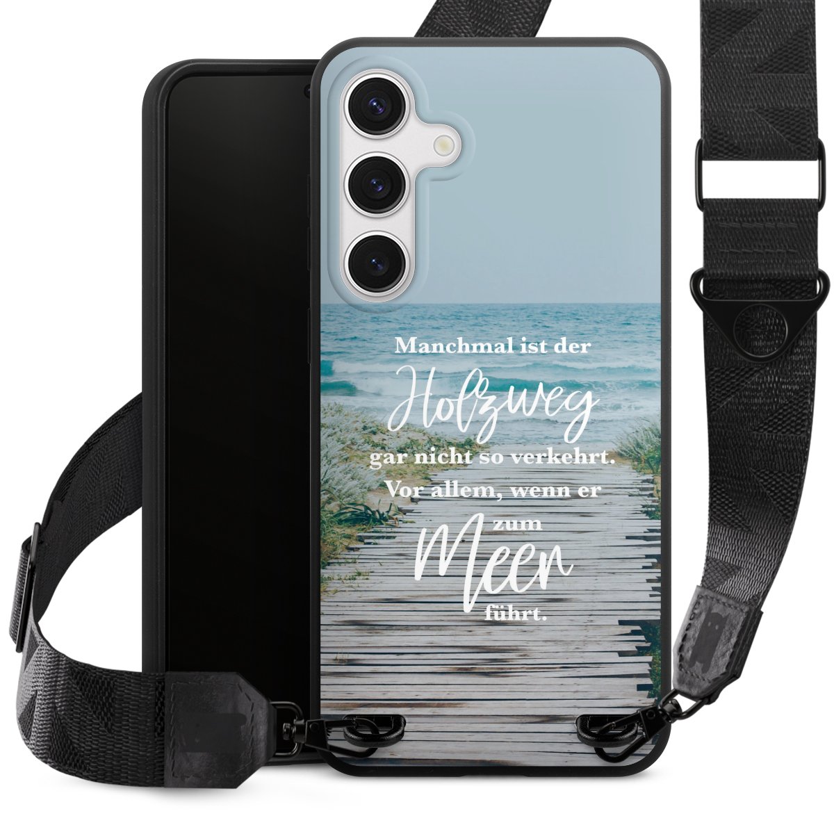 Gestalte Dein Case ganz nach Deinen Wünschen! Edles Creme oder lieber klassisches Schwarz? Du entscheidest, welche Farbe am besten zu Dir passt. Die dezenten Designs der Gurtbänder passen garantiert zu Deiner Hülle, egal mit welchem Lieblingsmotiv Du Dein Case bedrucken lässt.