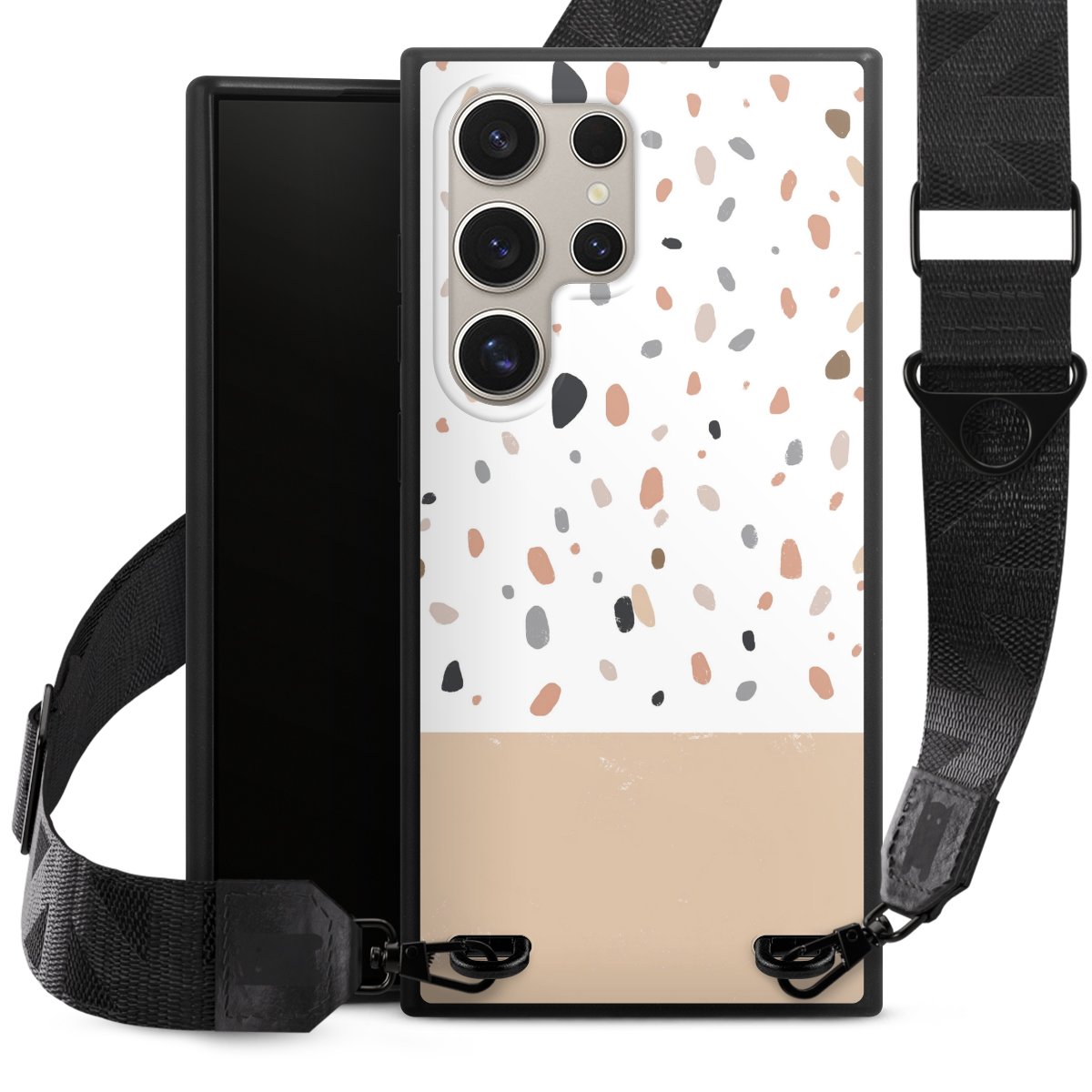 Gestalte Dein Case ganz nach Deinen Wünschen! Edles Creme oder lieber klassisches Schwarz? Du entscheidest, welche Farbe am besten zu Dir passt. Die dezenten Designs der Gurtbänder passen garantiert zu Deiner Hülle, egal mit welchem Lieblingsmotiv Du Dein Case bedrucken lässt.