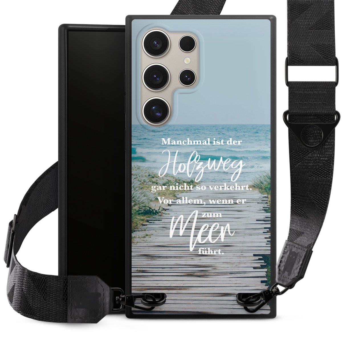 Gestalte Dein Case ganz nach Deinen Wünschen! Edles Creme oder lieber klassisches Schwarz? Du entscheidest, welche Farbe am besten zu Dir passt. Die dezenten Designs der Gurtbänder passen garantiert zu Deiner Hülle, egal mit welchem Lieblingsmotiv Du Dein Case bedrucken lässt.