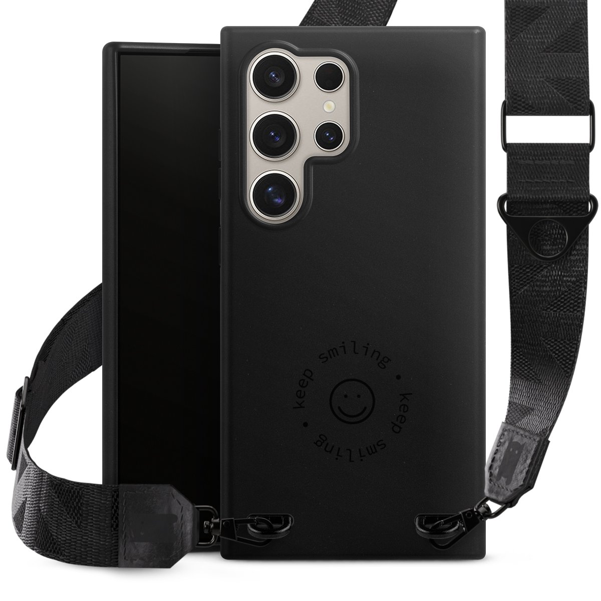 Gestalte Dein Case ganz nach Deinen Wünschen! Edles Creme oder lieber klassisches Schwarz? Du entscheidest, welche Farbe am besten zu Dir passt. Die dezenten Designs der Gurtbänder passen garantiert zu Deiner Hülle, egal mit welchem Lieblingsmotiv Du Dein Case bedrucken lässt.