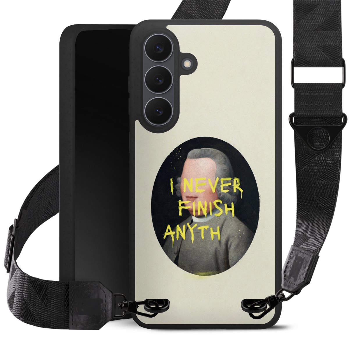 Gestalte Dein Case ganz nach Deinen Wünschen! Edles Creme oder lieber klassisches Schwarz? Du entscheidest, welche Farbe am besten zu Dir passt. Die dezenten Designs der Gurtbänder passen garantiert zu Deiner Hülle, egal mit welchem Lieblingsmotiv Du Dein Case bedrucken lässt.