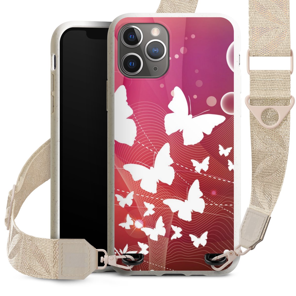 Gestalte Dein Case ganz nach Deinen Wünschen! Edles Creme oder lieber klassisches Schwarz? Du entscheidest, welche Farbe am besten zu Dir passt. Die dezenten Designs der Gurtbänder passen garantiert zu Deiner Hülle, egal mit welchem Lieblingsmotiv Du Dein Case bedrucken lässt.